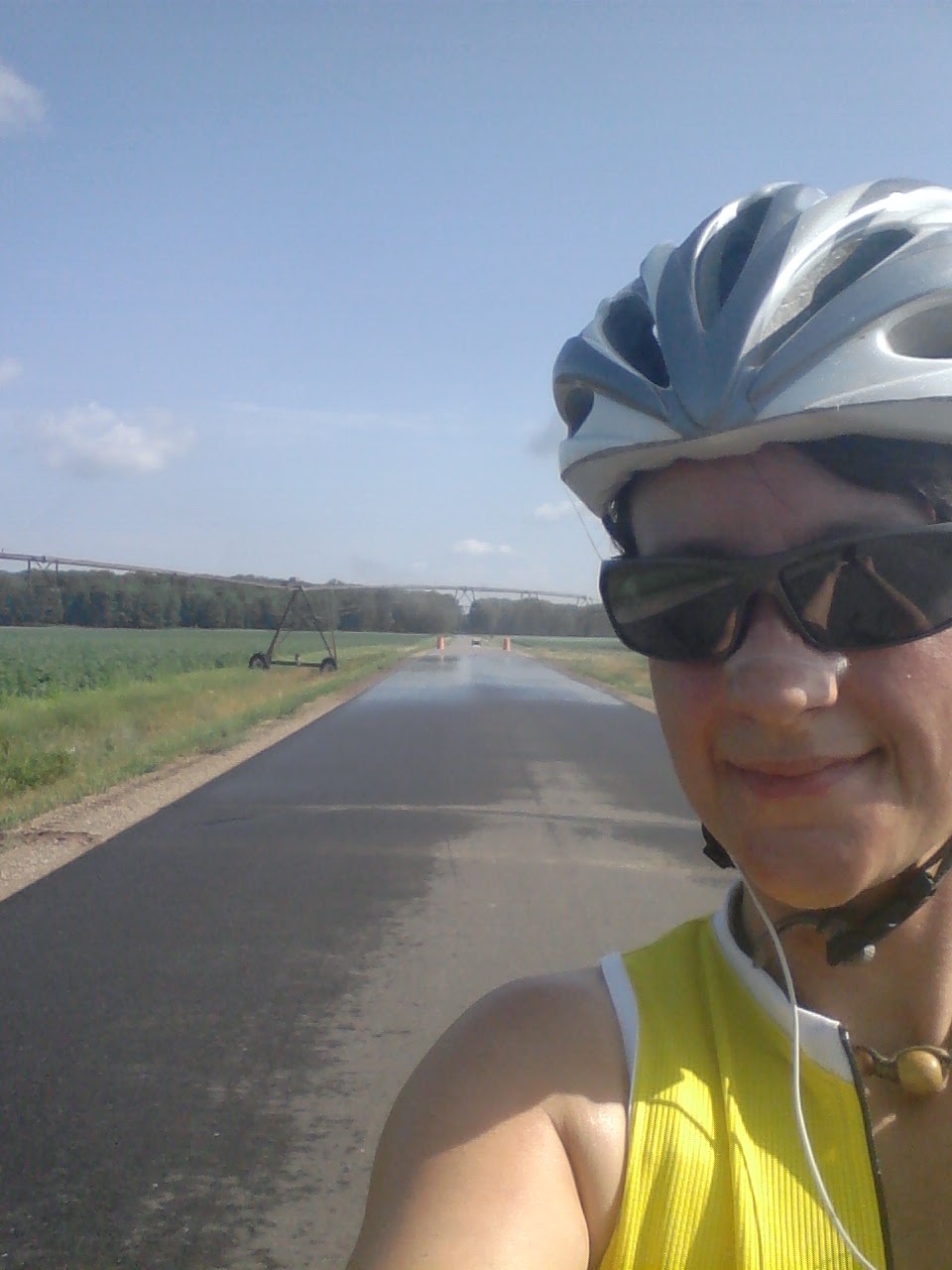 Crossing Red Bud Road, the party was going strong with spectators and encouragement. They would yell "wheelie!!" Yeah right! I'd certainly crash. I'm actually kind of clumsy and have never done a wheelie. One time I laughed and picked my front tire like an inch off the ground saying "There you go!". Another time they were all lined up with high fives. Must have gotten 10 high-fives in a row there. Shortly after the crossing back was the gal from Big Ring Flyers team with the rubber chicken squeaking. I love that! Cracks me up every time.