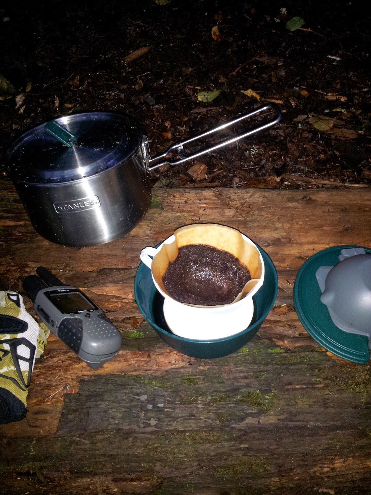 It was about 5:30pm. I was chilled and damp, so I decided to just go lay in the tent. Nothing better to do. I read an inspirational book, then the user manual for the MSR water filter. I think I was asleep by 6pm! I woke to the sound of rain, and remembered I'd left a few items out which I should bring into the tent. Headlamp on, I attended to that and my full bladder, figuring it was the middle of the night. Oh and by the way, it was not a group of Scouts next door - just a couple of guys who apparently respected my solitude as I did theirs. I checked the time. 9:40pm. Haha!